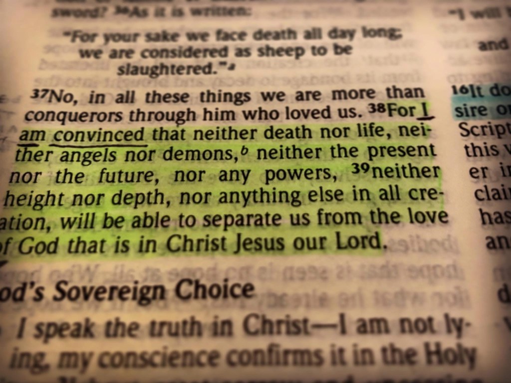 [38] For I am sure that neither death nor life, nor angels nor rulers, nor things present nor things to come, nor powers, [39] nor height nor depth, nor anything else in all creation, will be able to separate us from the love of God in Christ Jesus our Lord.