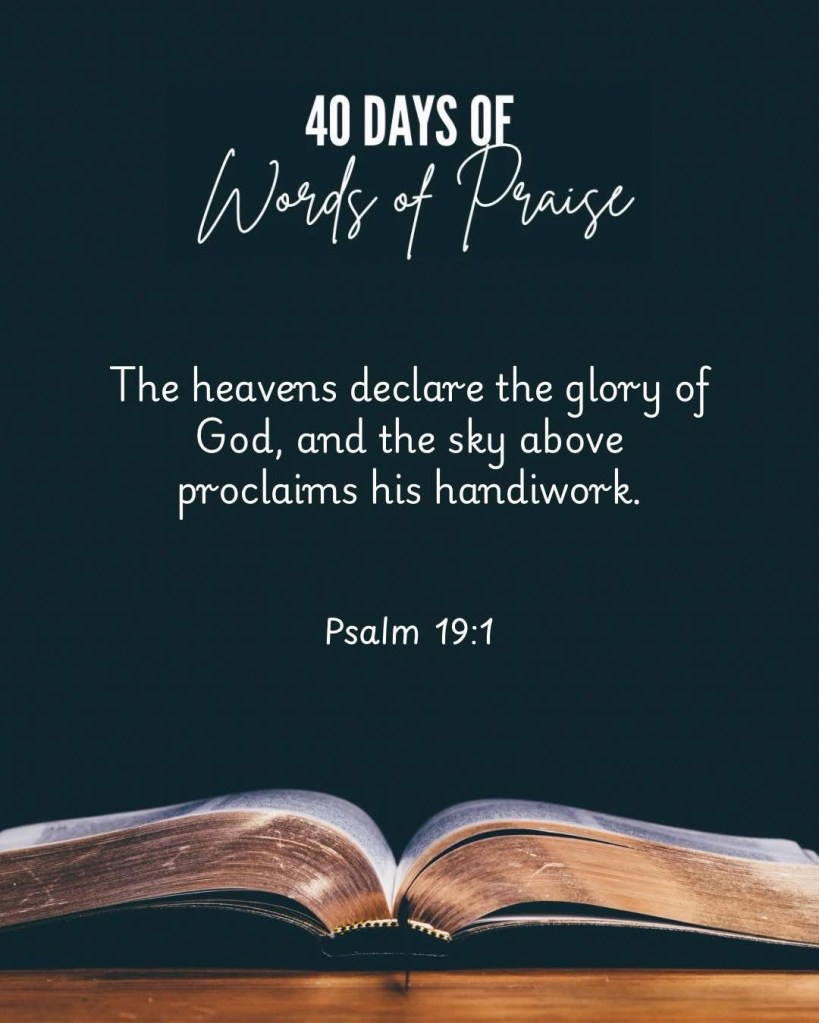 Father in Heaven, the heavens declare your glory. So should I. The sky proclaims your work. So should I. Fill my heart with your glory that my words may follow. In Jesus Name, Amen.